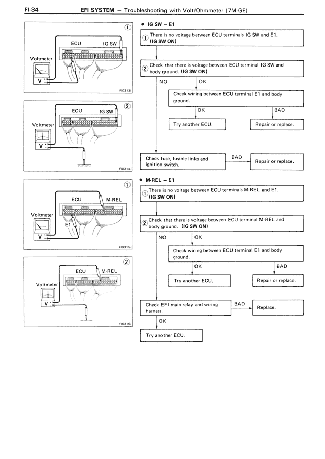 FI-34 EFI SYSTEM — Troubleshooting with Volt/Ohmmeter (7M-GE)