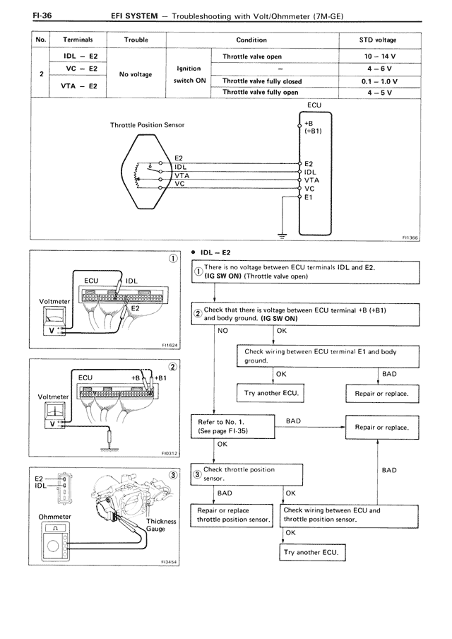 [Diagram 1 (FI1624): Shows ECU with IDL and E2 connections to voltmeter]