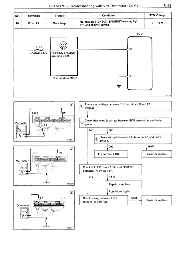 EFI SYSTEM — Troubleshooting with Volt/Ohmmeter (7M-GE) FI-45