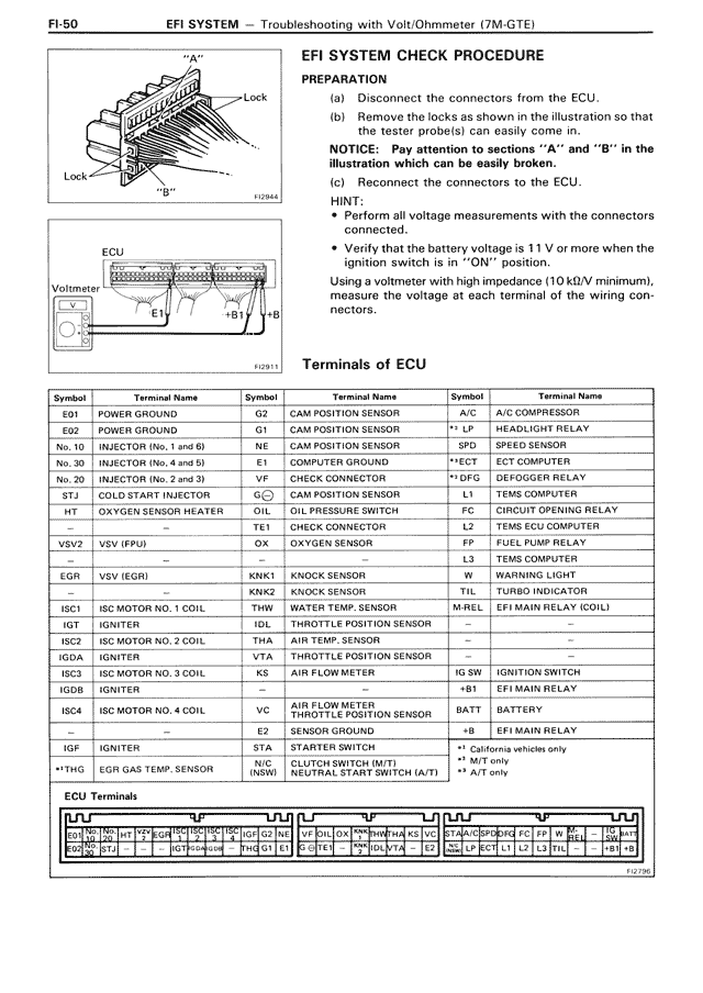 EFI SYSTEM — Troubleshooting with Volt/Ohmmeter (7M-GTE)