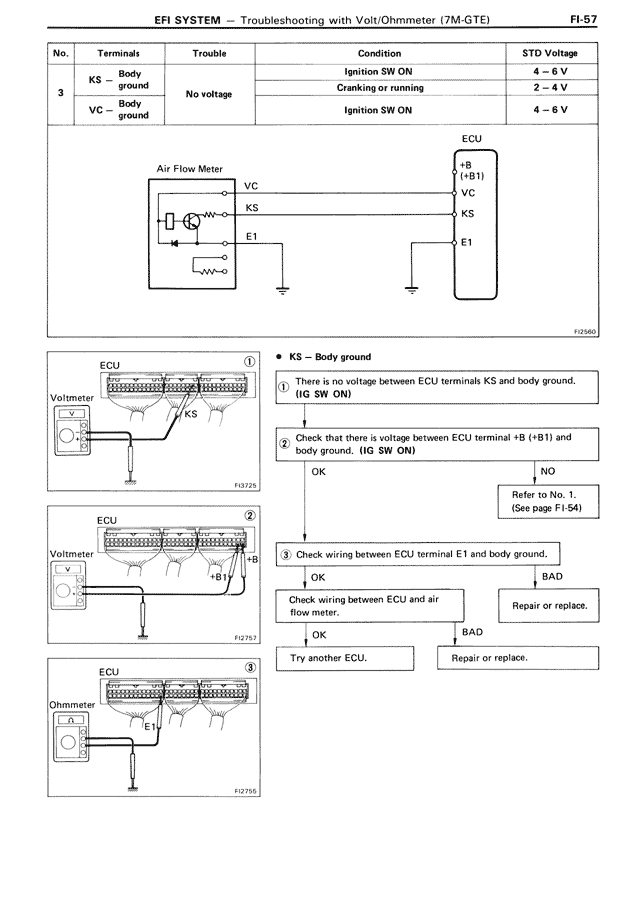 EFI SYSTEM — Troubleshooting with Volt/Ohmmeter (7M-GTE) FI-57
