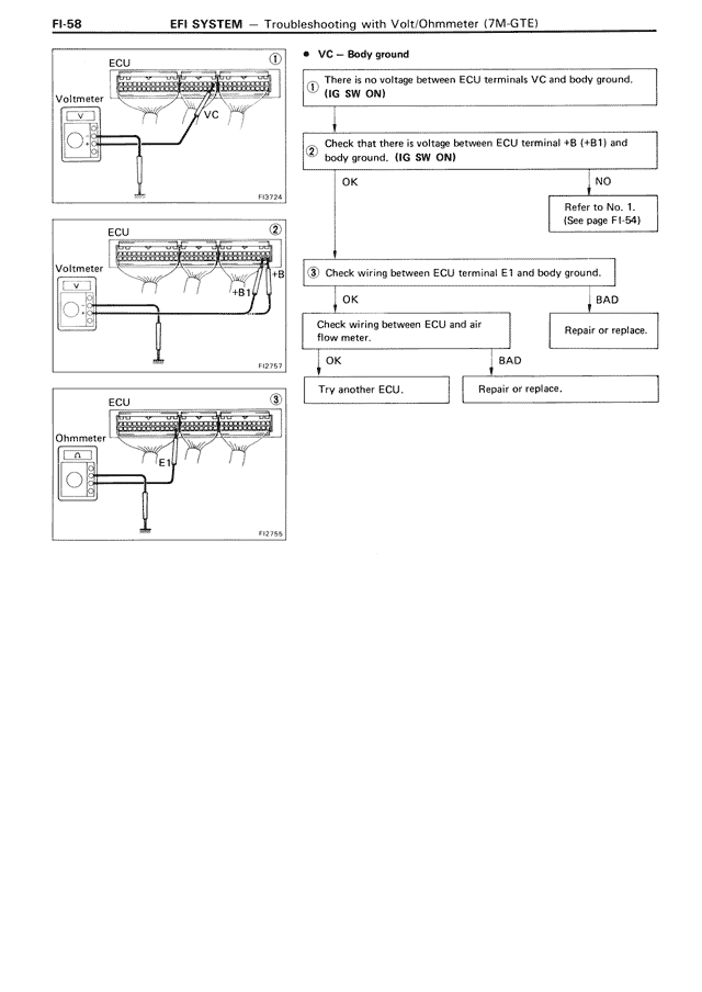 EFI SYSTEM — Troubleshooting with Volt/Ohmmeter (7M-GTE)