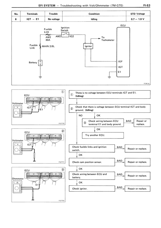 EFI SYSTEM — Troubleshooting with Volt/Ohmmeter (7M-GTE) FI-63