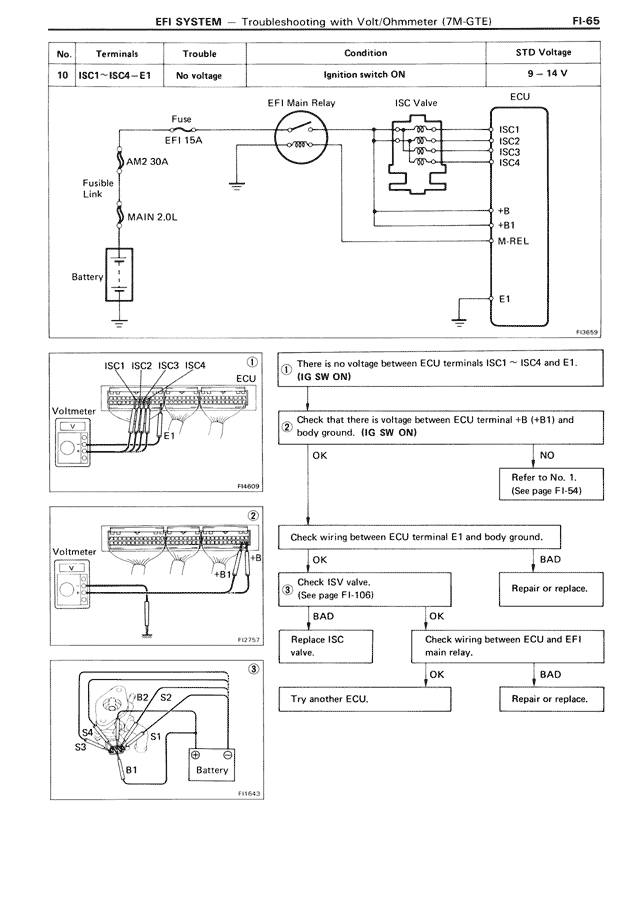 EFI SYSTEM — Troubleshooting with Volt/Ohmmeter (7M-GTE) FI-65