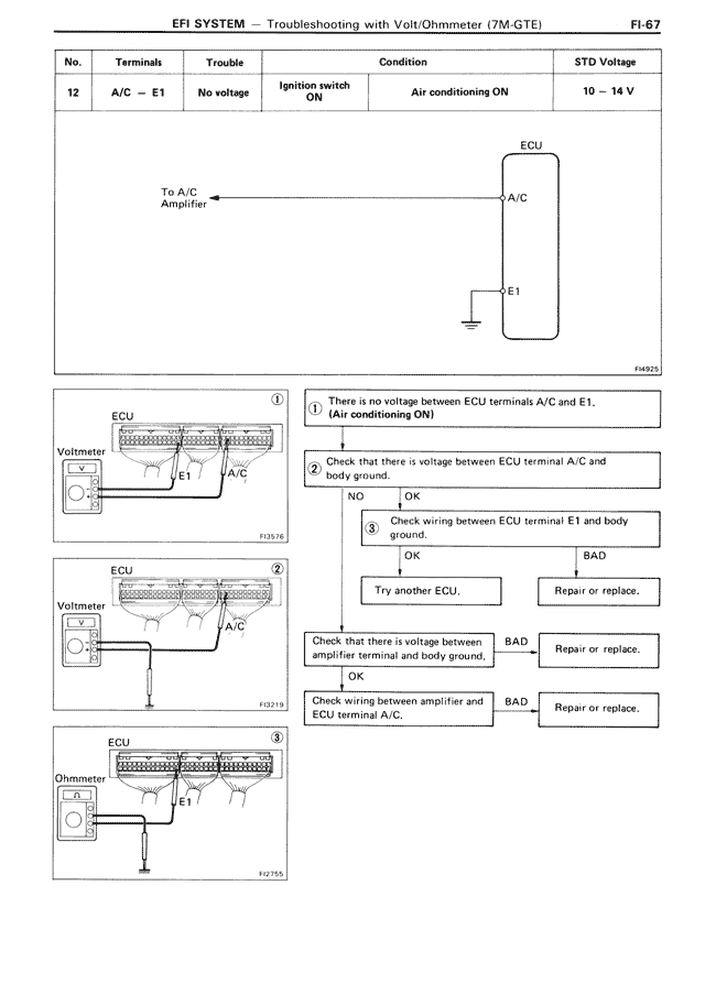 EFI SYSTEM — Troubleshooting with Volt/Ohmmeter (7M-GTE) FI-67