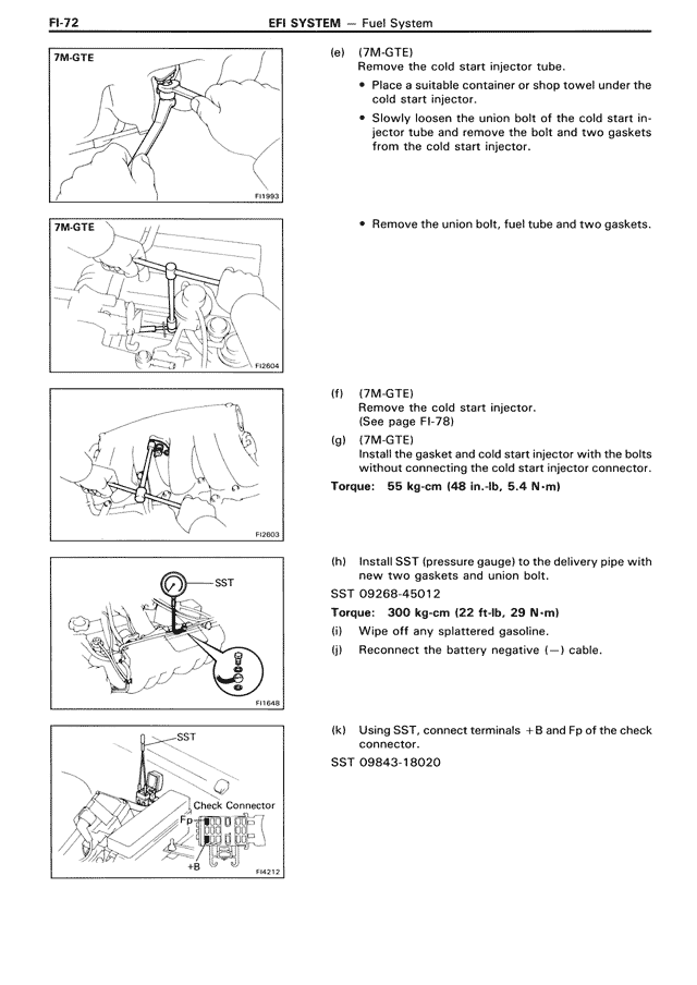 (k) Using SST, connect terminals +B and Fp of the check connector.
