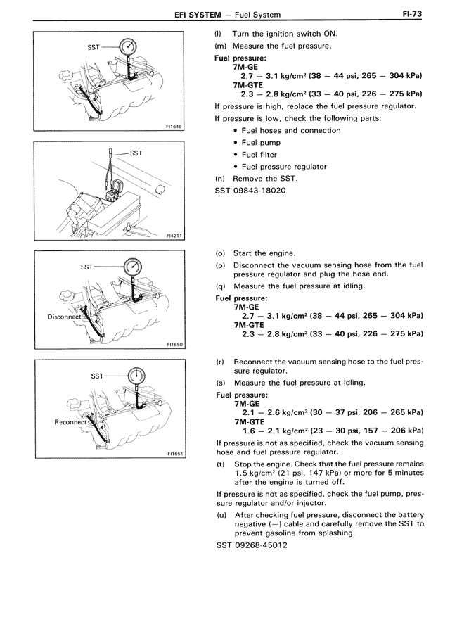 (t) Stop the engine. Check that the fuel pressure remains