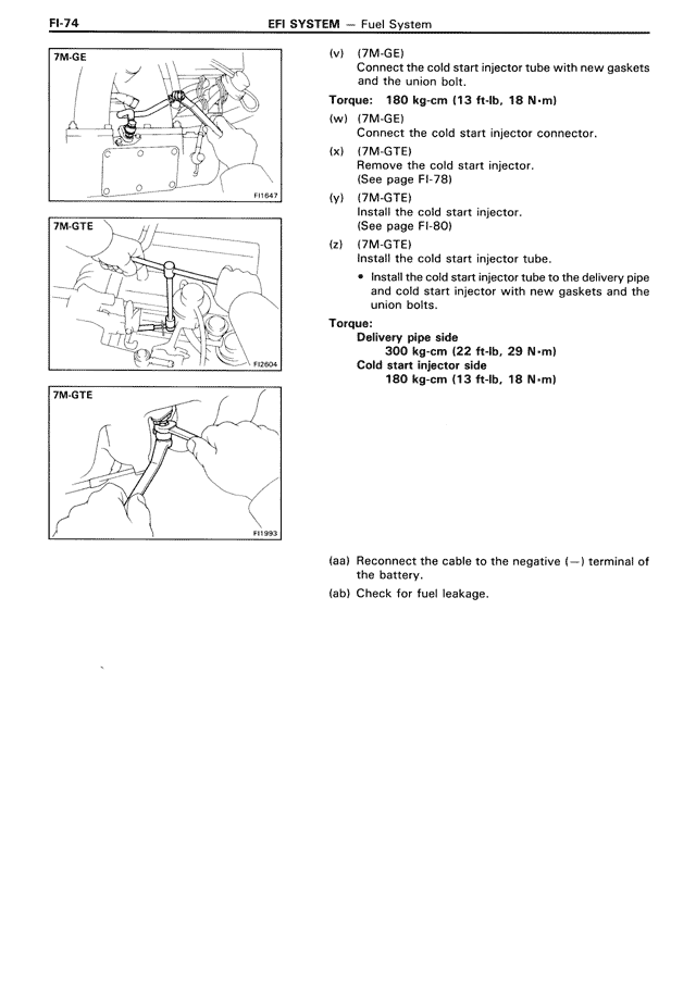 • Install the cold start injector tube to the delivery pipe and cold start injector with new gaskets and the union bolts.