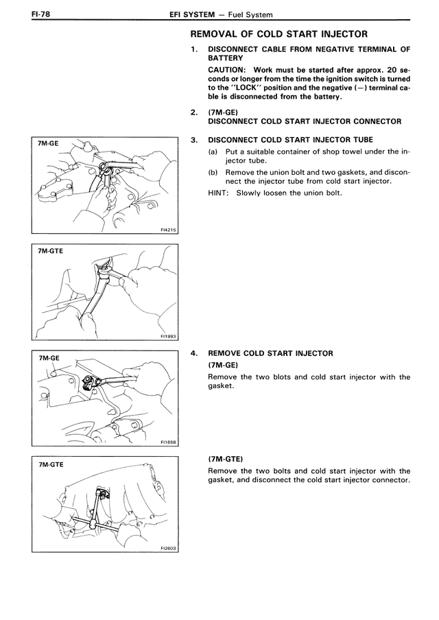 DISCONNECT COLD START INJECTOR CONNECTOR