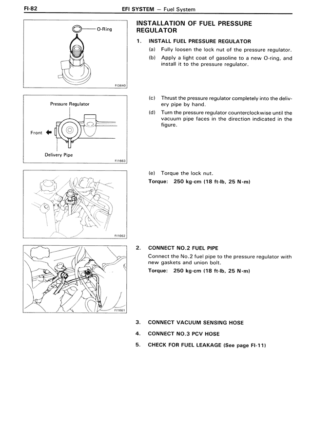 Connect the No. 2 fuel pipe to the pressure regulator with new gaskets and union bolt.