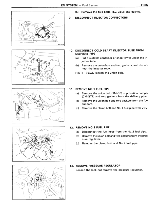 10. DISCONNECT COLD START INJECTOR TUBE FROM DELIVERY PIPE