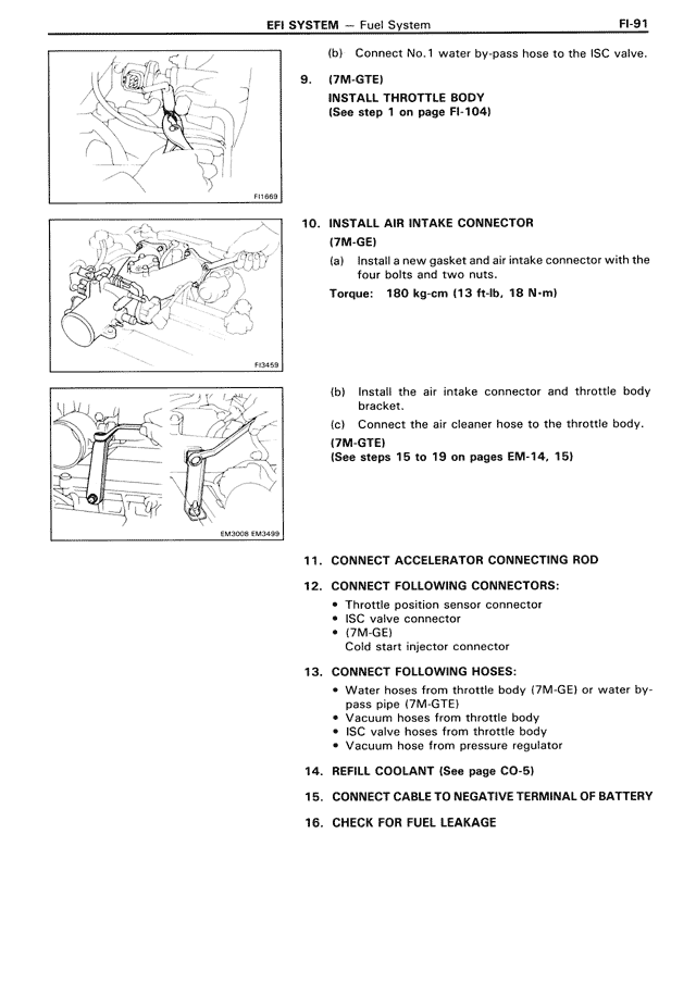 • Water hoses from throttle body (7M-GE) or water by-pass pipe (7M-GTE)