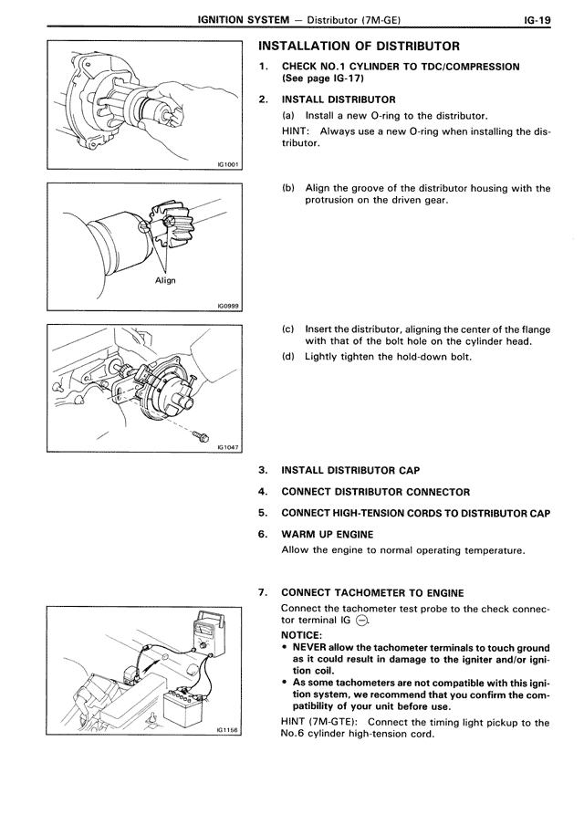 HINT (7M-GTE): Connect the timing light pickup to the No.6 cylinder high-tension cord.