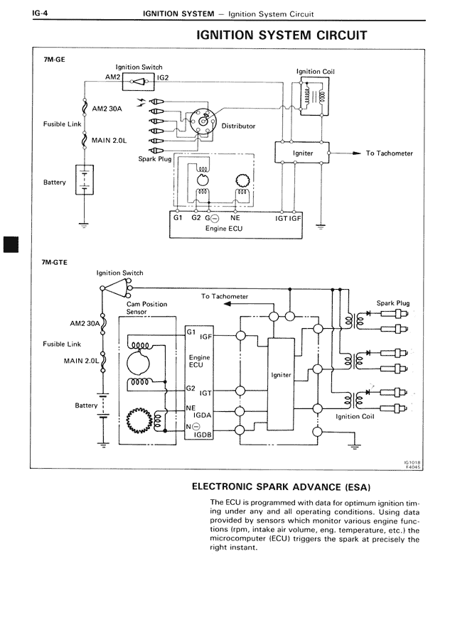 The ECU is programmed with data for optimum ignition timing under any and all operating conditions. Using data provided by sensors which monitor various engine functions (rpm, intake air volume, eng. temperature, etc.) the microcomputer (ECU) triggers the spark at precisely the right instant.