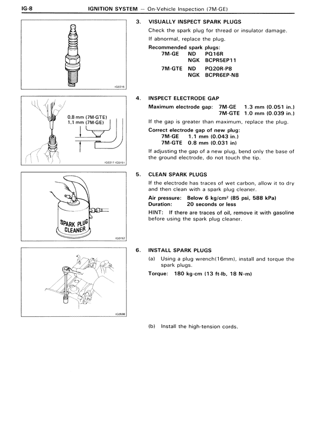 Maximum electrode gap: 7M-GE 1.3 mm (0.051 in.)