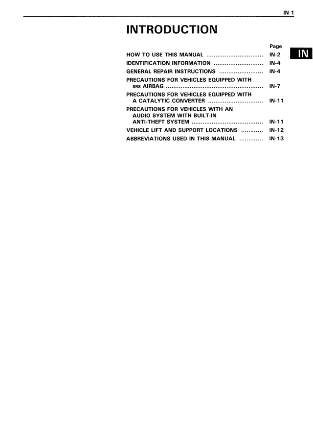 GENERAL REPAIR INSTRUCTIONS ....................... IN-4