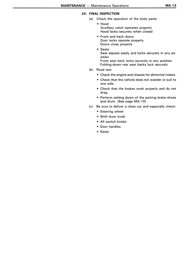 (a) Check the operation of the body parts: