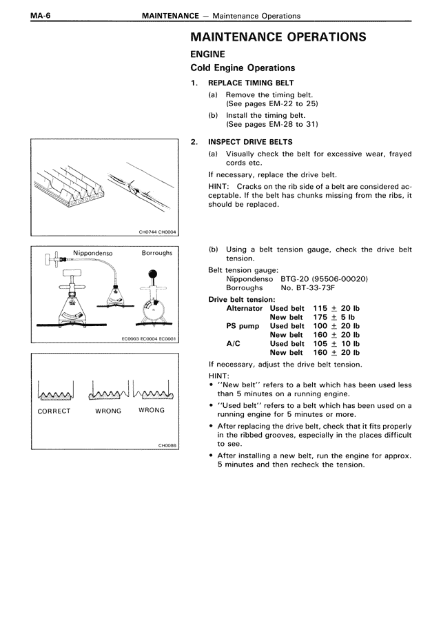 • "New belt" refers to a belt which has been used less than 5 minutes on a running engine.