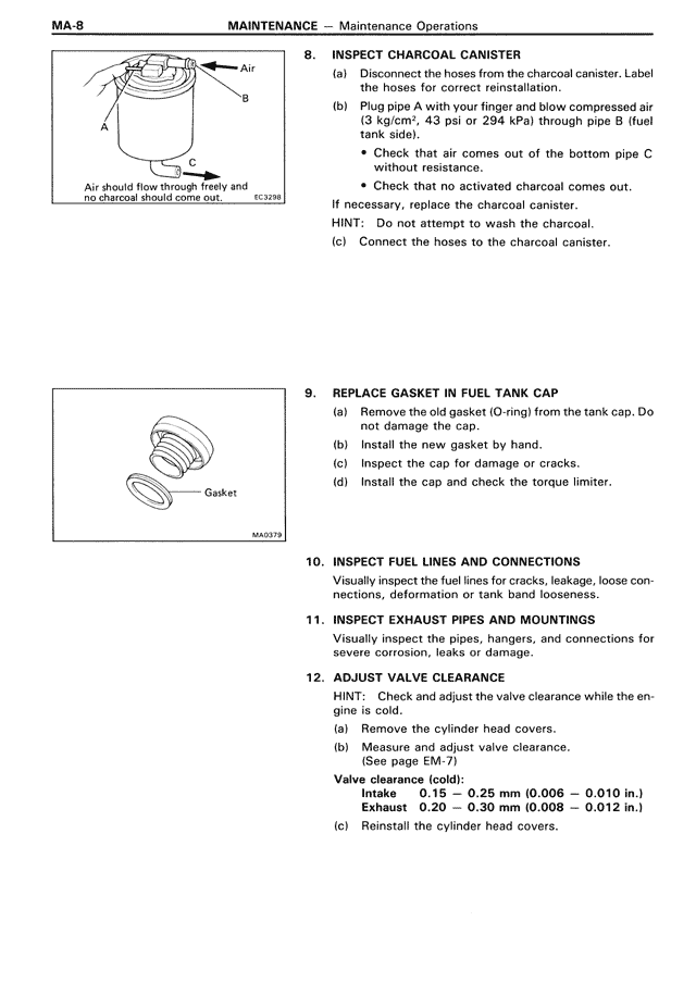 8. INSPECT CHARCOAL CANISTER