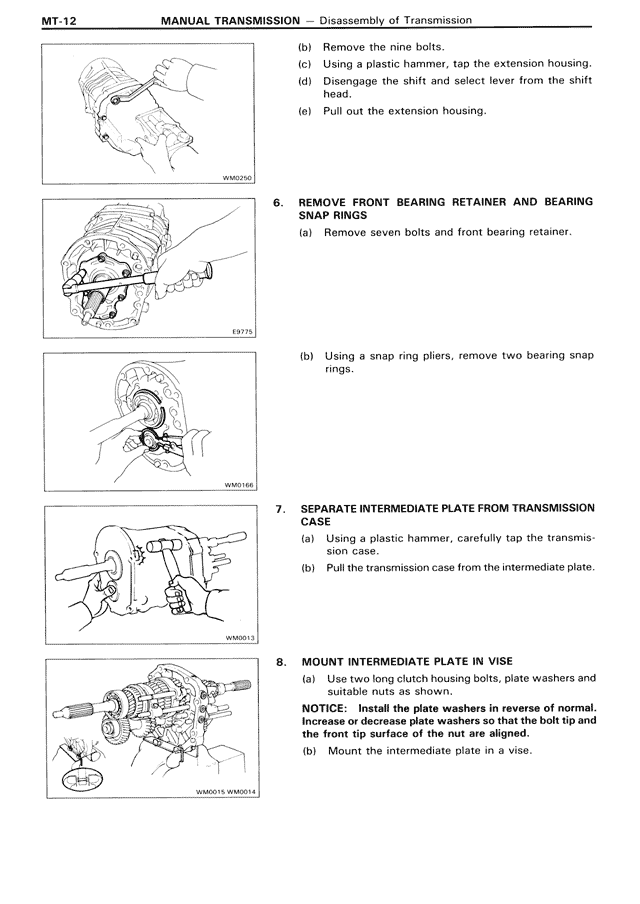 MT-12 MANUAL TRANSMISSION — Disassembly of Transmission