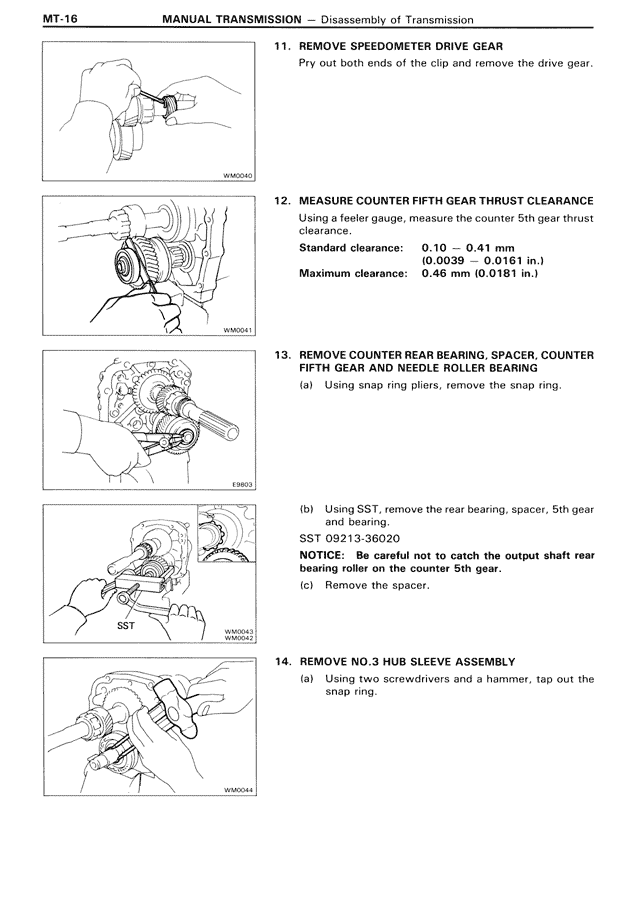 13. REMOVE COUNTER REAR BEARING, SPACER, COUNTER