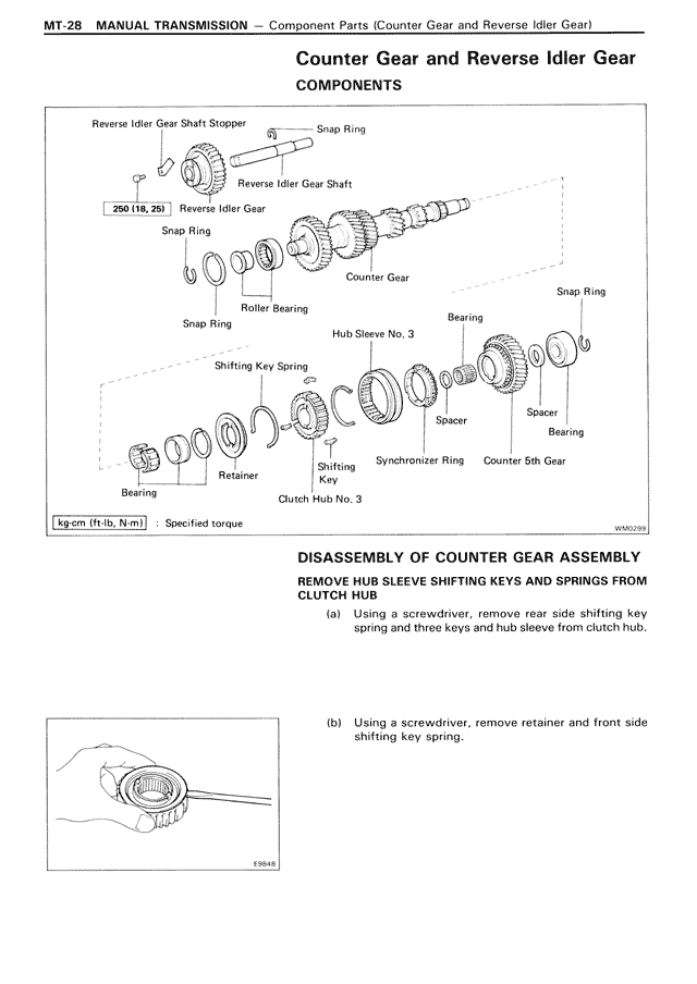 (b) Using a screwdriver, remove retainer and front side shifting key spring.