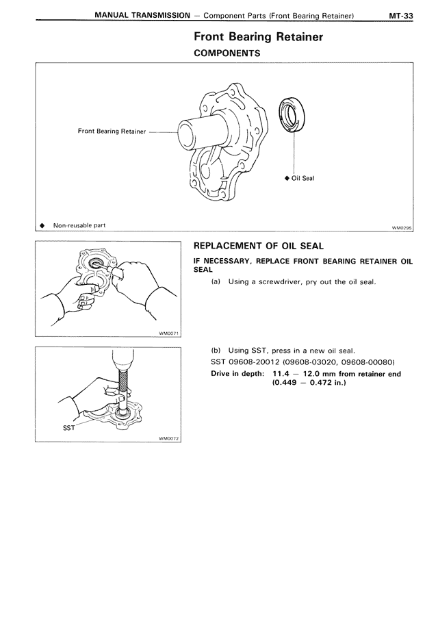 MANUAL TRANSMISSION — Component Parts (Front Bearing Retainer) MT-33