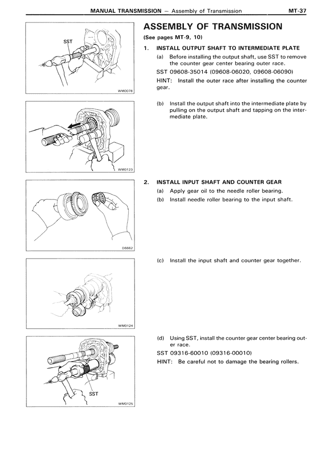 (a) Before installing the output shaft, use SST to remove the counter gear center bearing outer race.