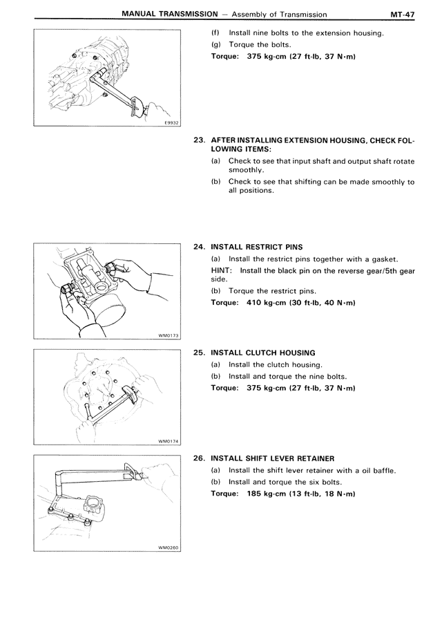 (f) Install nine bolts to the extension housing.