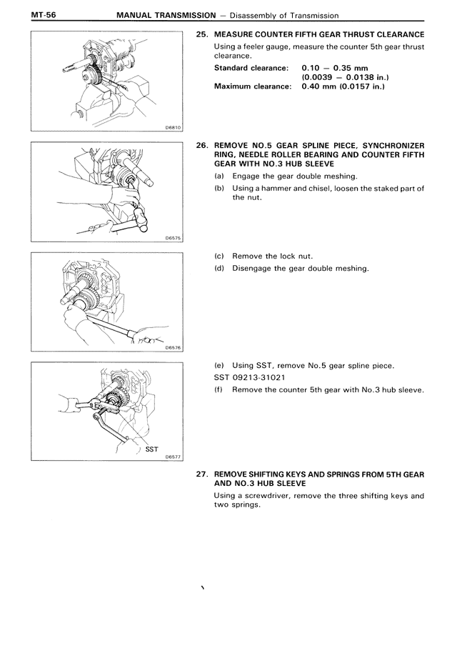 26. REMOVE NO.5 GEAR SPLINE PIECE, SYNCHRONIZER RING, NEEDLE ROLLER BEARING AND COUNTER FIFTH GEAR WITH NO.3 HUB SLEEVE