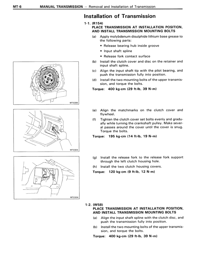 (d) Install the two mounting bolts of the upper transmission, and torque the bolts.