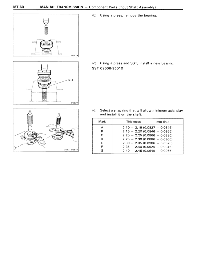 MANUAL TRANSMISSION — Component Parts (Input Shaft Assembly)