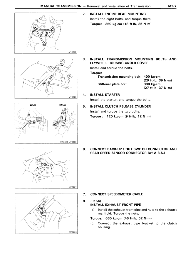 3. INSTALL TRANSMISSION MOUNTING BOLTS AND