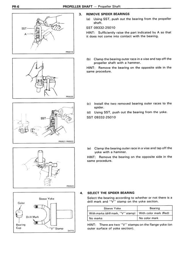 Select the bearing according to whether or not there is a drill mark and "V" stamp on the yoke section.