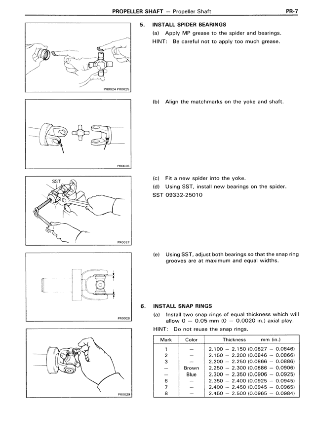 (a) Install two snap rings of equal thickness which will allow 0 — 0.05 mm (0 — 0.0020 in.) axial play.