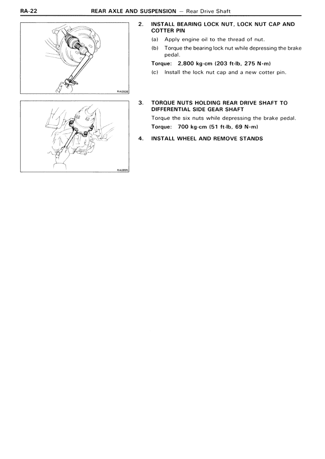 3. TORQUE NUTS HOLDING REAR DRIVE SHAFT TO DIFFERENTIAL SIDE GEAR SHAFT
