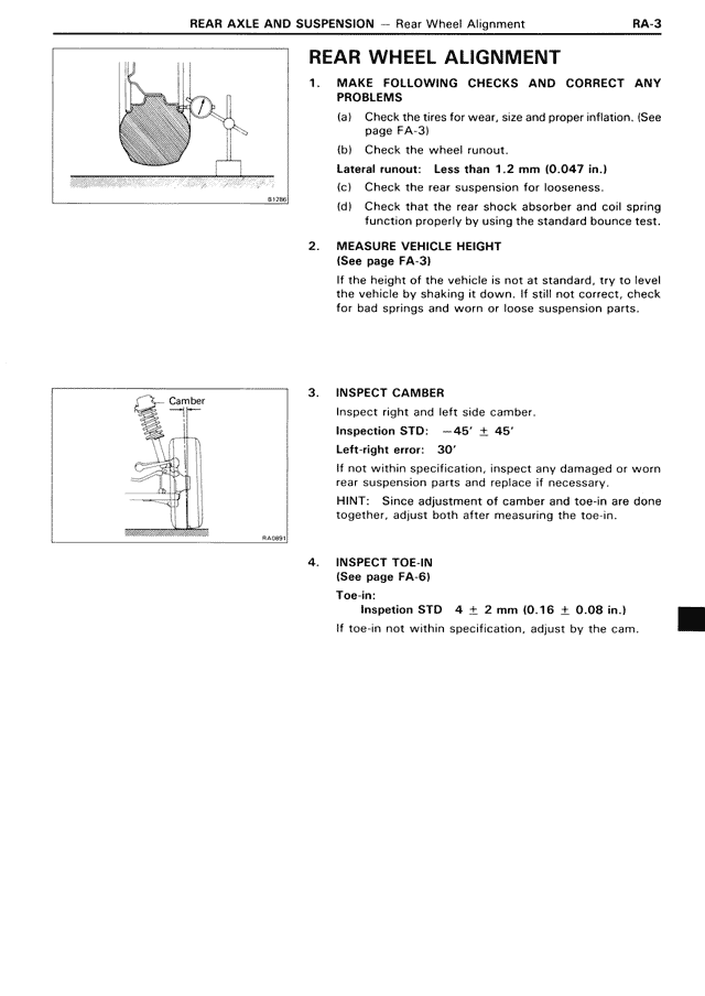 HINT: Since adjustment of camber and toe-in are done together, adjust both after measuring the toe-in.
