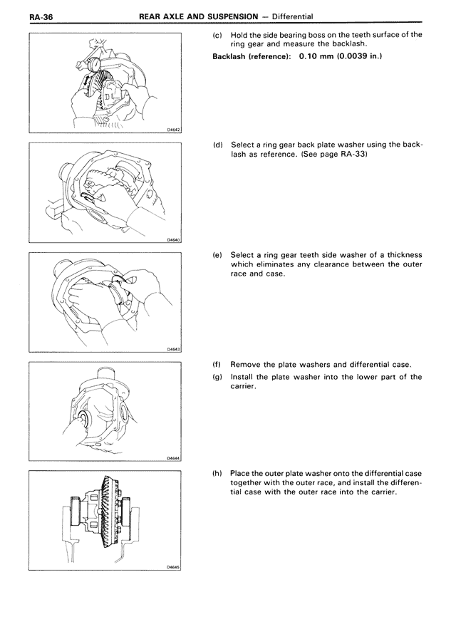 (d) Select a ring gear back plate washer using the backlash as reference. (See page RA-33)