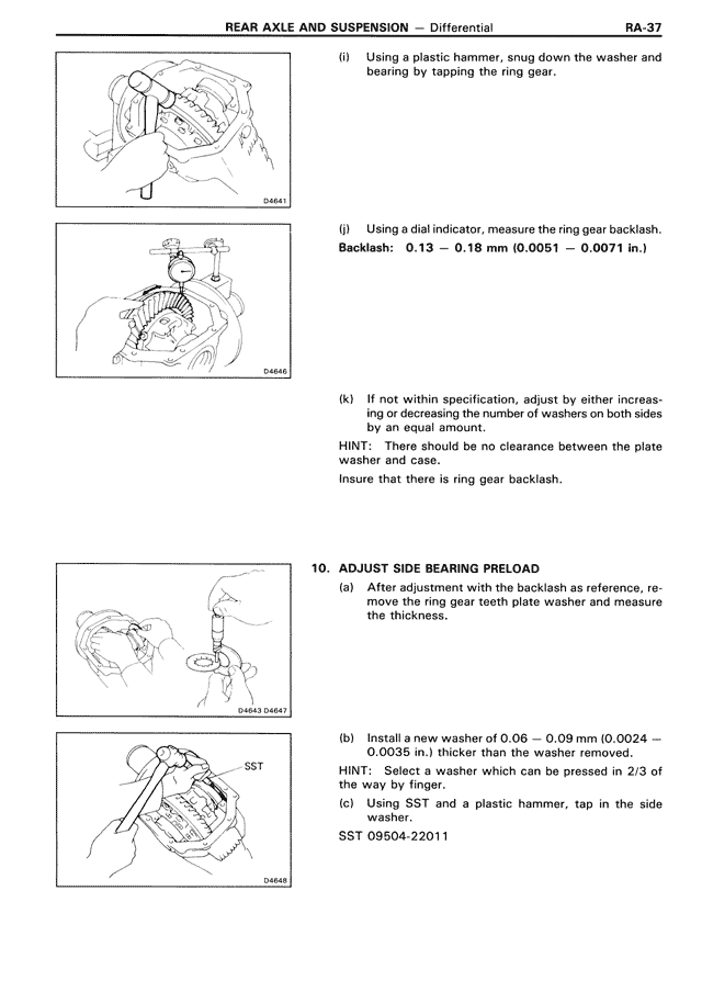 (a) After adjustment with the backlash as reference, remove the ring gear teeth plate washer and measure the thickness.
