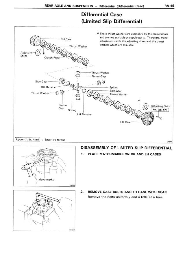 * These thrust washers are used only by the manufacture and are not available as supply parts. Therefore, make adjustments with the adjusting shims and the thrust washers which are available.