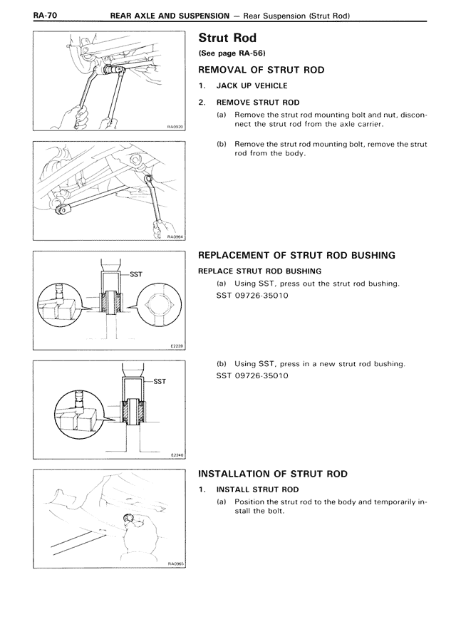 (a) Remove the strut rod mounting bolt and nut, disconnect the strut rod from the axle carrier.