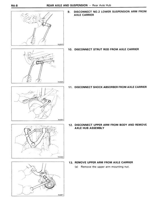 12. DISCONNECT UPPER ARM FROM BODY AND REMOVE AXLE HUB ASSEMBLY