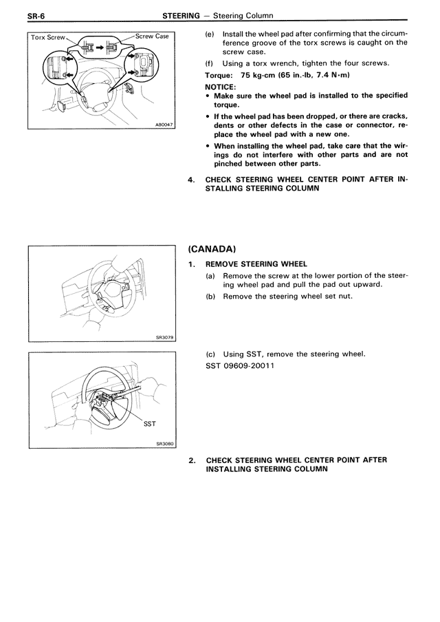 2. CHECK STEERING WHEEL CENTER POINT AFTER INSTALLING STEERING COLUMN