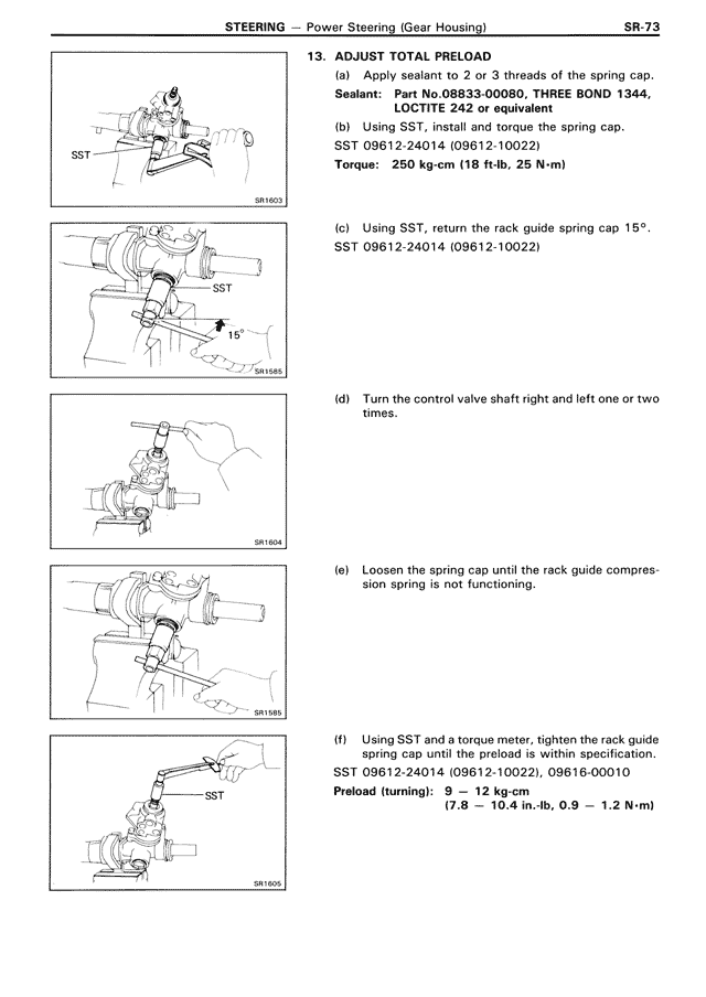 (c) Using SST, return the rack guide spring cap 15°.