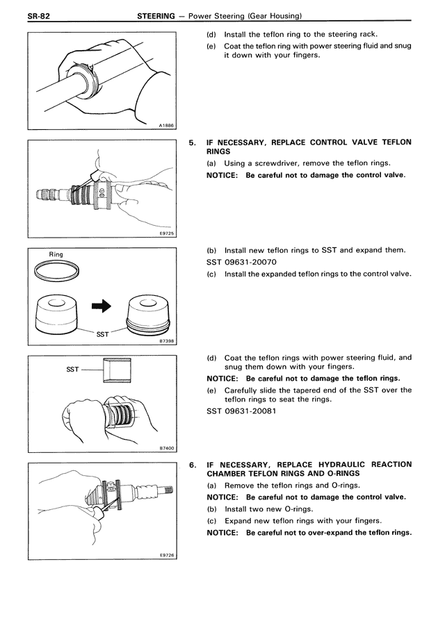 6. IF NECESSARY, REPLACE HYDRAULIC REACTION CHAMBER TEFLON RINGS AND O-RINGS