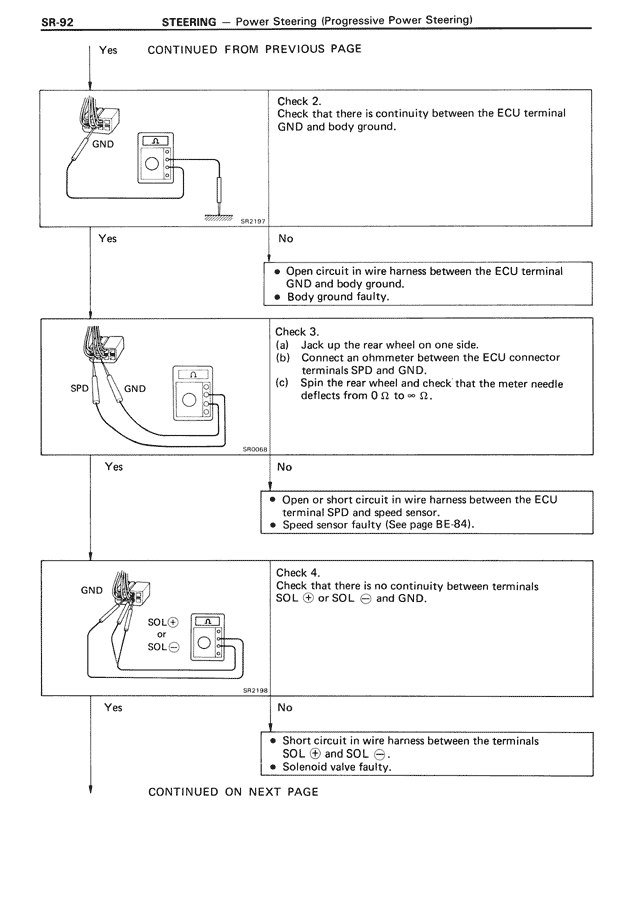 Check that there is no continuity between terminals SOL ① or SOL ② and GND.
