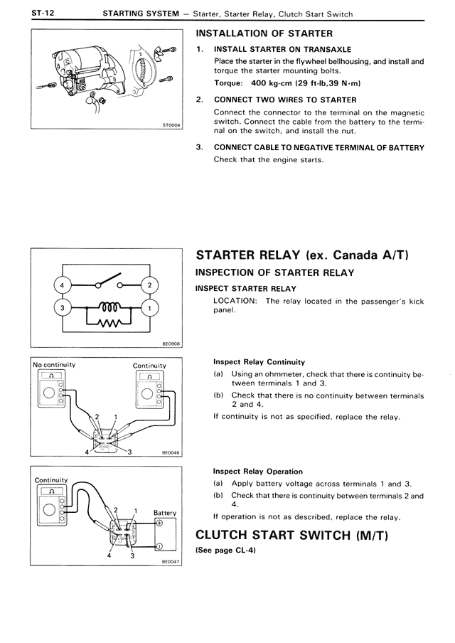 ST-12 STARTING SYSTEM — Starter, Starter Relay, Clutch Start Switch