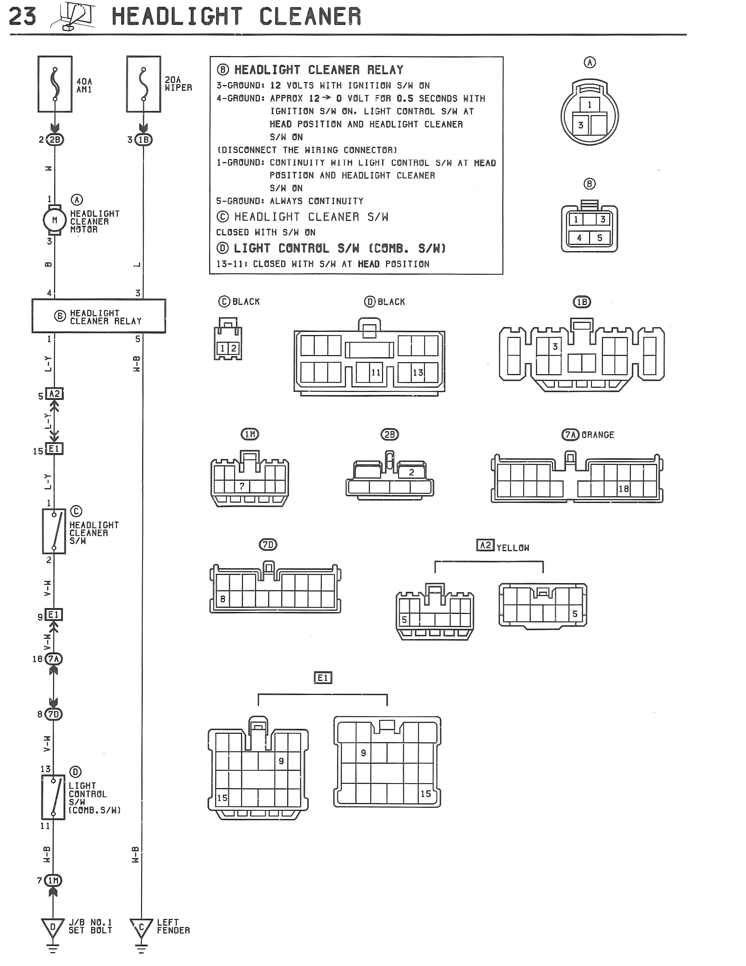 [DISCONNECT THE WIRING CONNECTOR] 1-GROUND: CONTINUITY WITH LIGHT CONTROL S/W AT HEAD POSITION AND HEADLIGHT CLEANER S/W ON