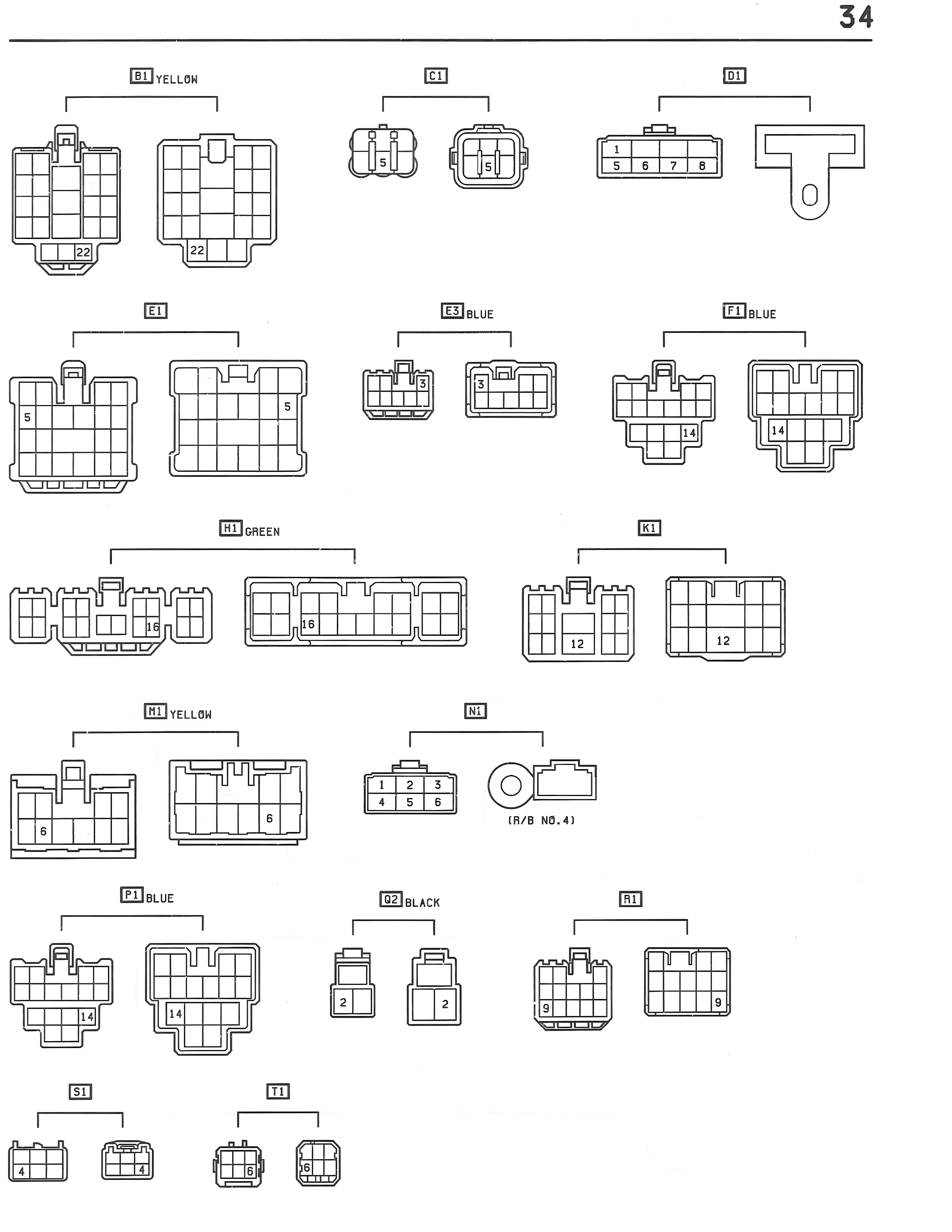 34 B1 YELLOW 22 22 C1 D1 1 5 6 7 8 E1 5 E3 BLUE F1 BLUE 14 14 H1 GREEN 16 16 K1 12 12 M1 YELLOW 6 6 N1 1 2 3 4 5 6 (R/B NO.4) P1 BLUE 14 14 Q2 BLACK 2 2 R1 9 9 S1 4 4 T1 8 8