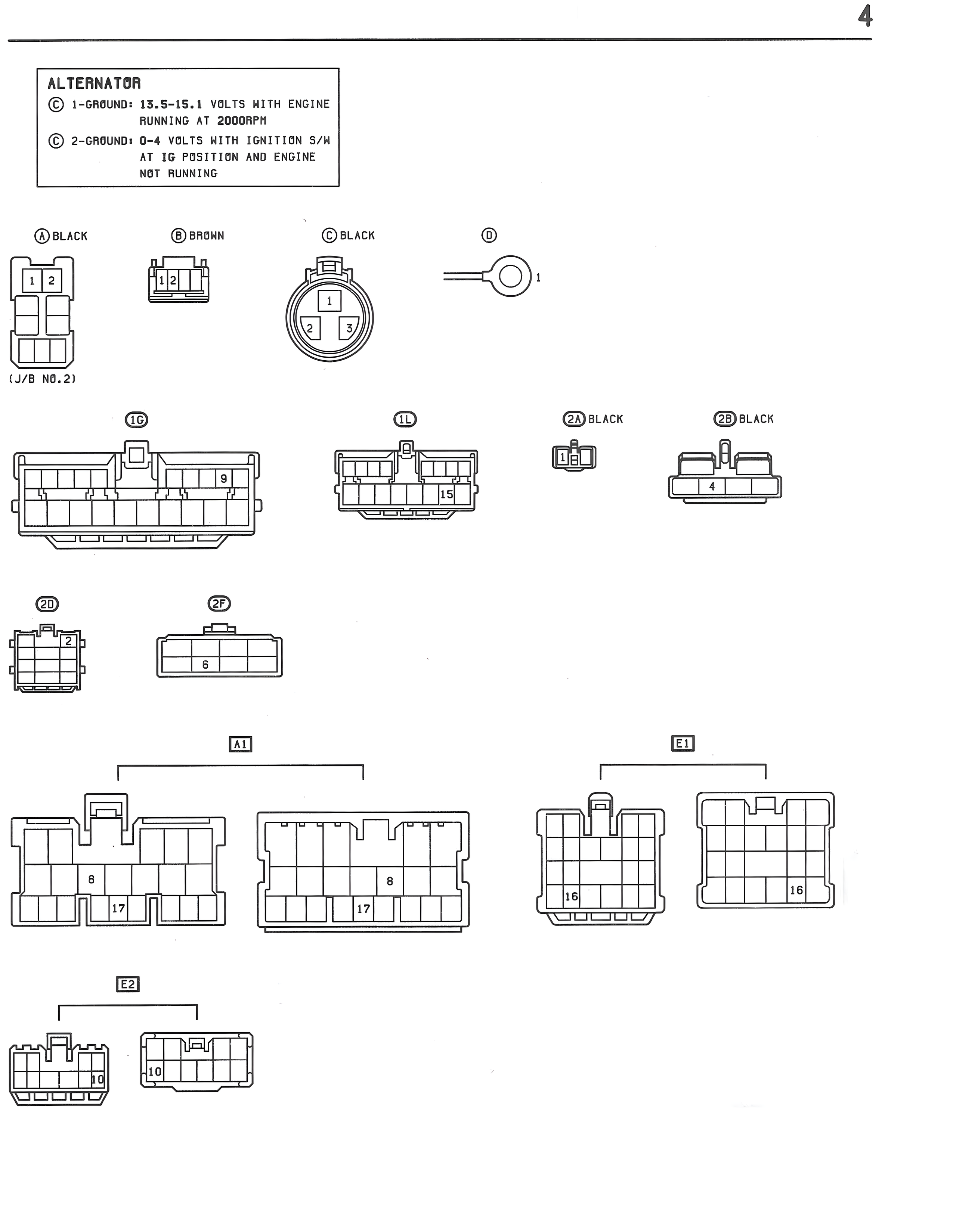 ⊕ 1-GROUND: 13.5-15.1 VOLTS WITH ENGINE